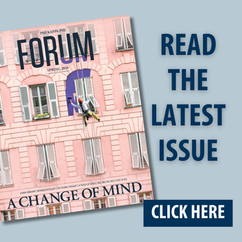 Since 1915, the Phi Kappa Phi Forum has provided members with coverage of the Society and the world at large, reaching more than 100,000 readers, including active members, government officials, libraries, executives and others.
